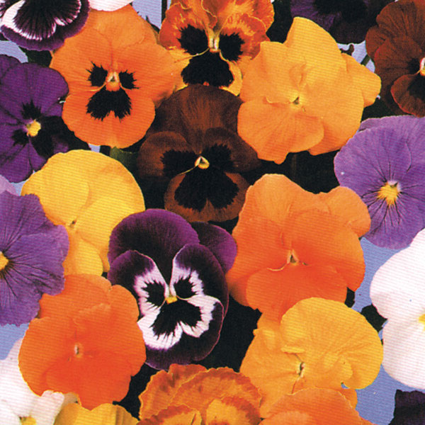 Real all rounder, will flower in winter, spring and summer depending on the sowing time. A mixture of clear and blotched face pansies.