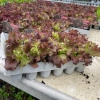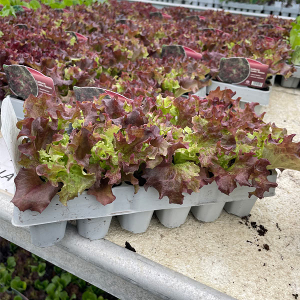 The plug plants grow lettuces with a delightful deep red tinge over most of the loose leaves.